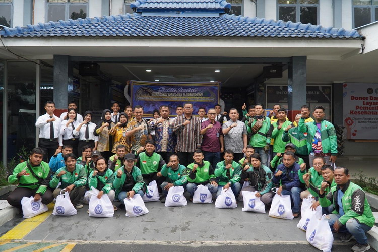 Rutan Kelas I Medan Bagikan 50 Paket Bansos kepada Pengemudi Ojek Online