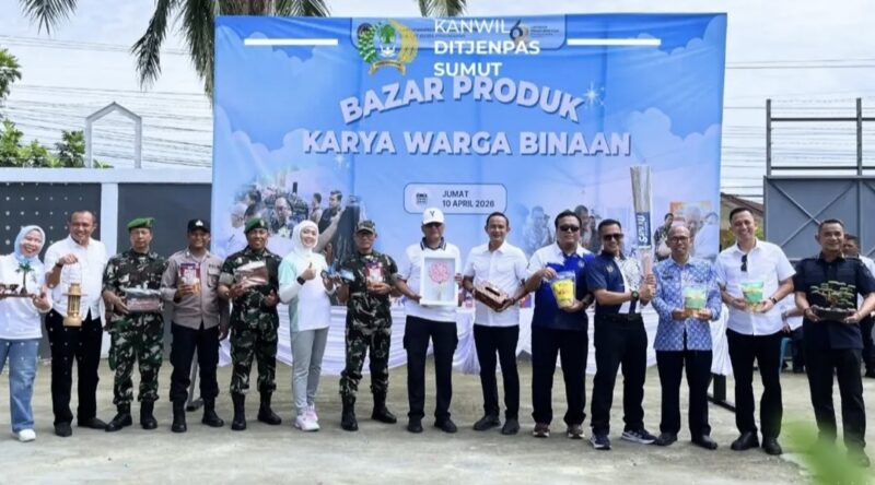 Medan — Dalam rangka memeriahkan Hari Bhakti Pemasyarakatan (HBP) ke-62 Tahun 2026, Kantor Wilayah Direktorat Jenderal Pemasyarakatan Sumatera Utara menggelar bazar produk hasil karya Warga Binaan Pemasyarakatan (WBP) di halaman Kantor Wilayah Ditjenpas Sumut, Jalan Pemasyarakatan, Medan Helvetia, Jumat (10/04/2026).